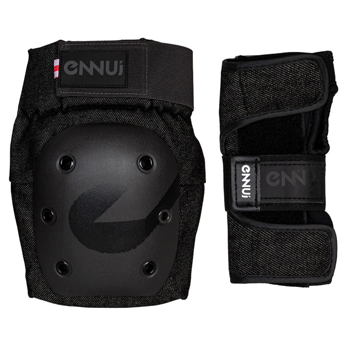ENNUI ST Dual Set Black - Protective gear for skateparks. Durable caps with narrow profile for range of motion. Reliable wristguards with large palm splint.