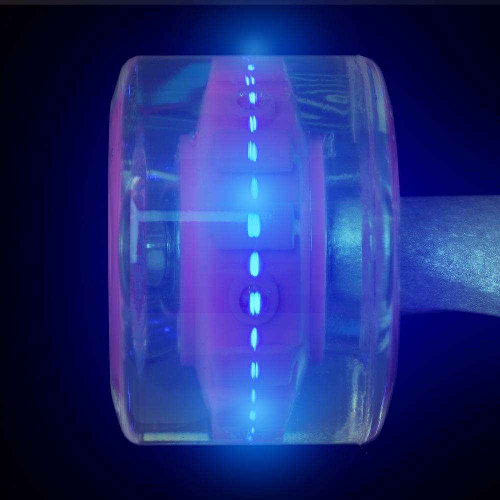 Slimeballs Light Ups cuentan con luces LED que se encienden cuando rueda, impulsadas por la rotación de la rueda y el rodamiento. No requiere pilas, viene con rodamientos. La forma OG Slime es una rueda de crucero con rodamiento central simétrico y versátil con uretano suave 78a.