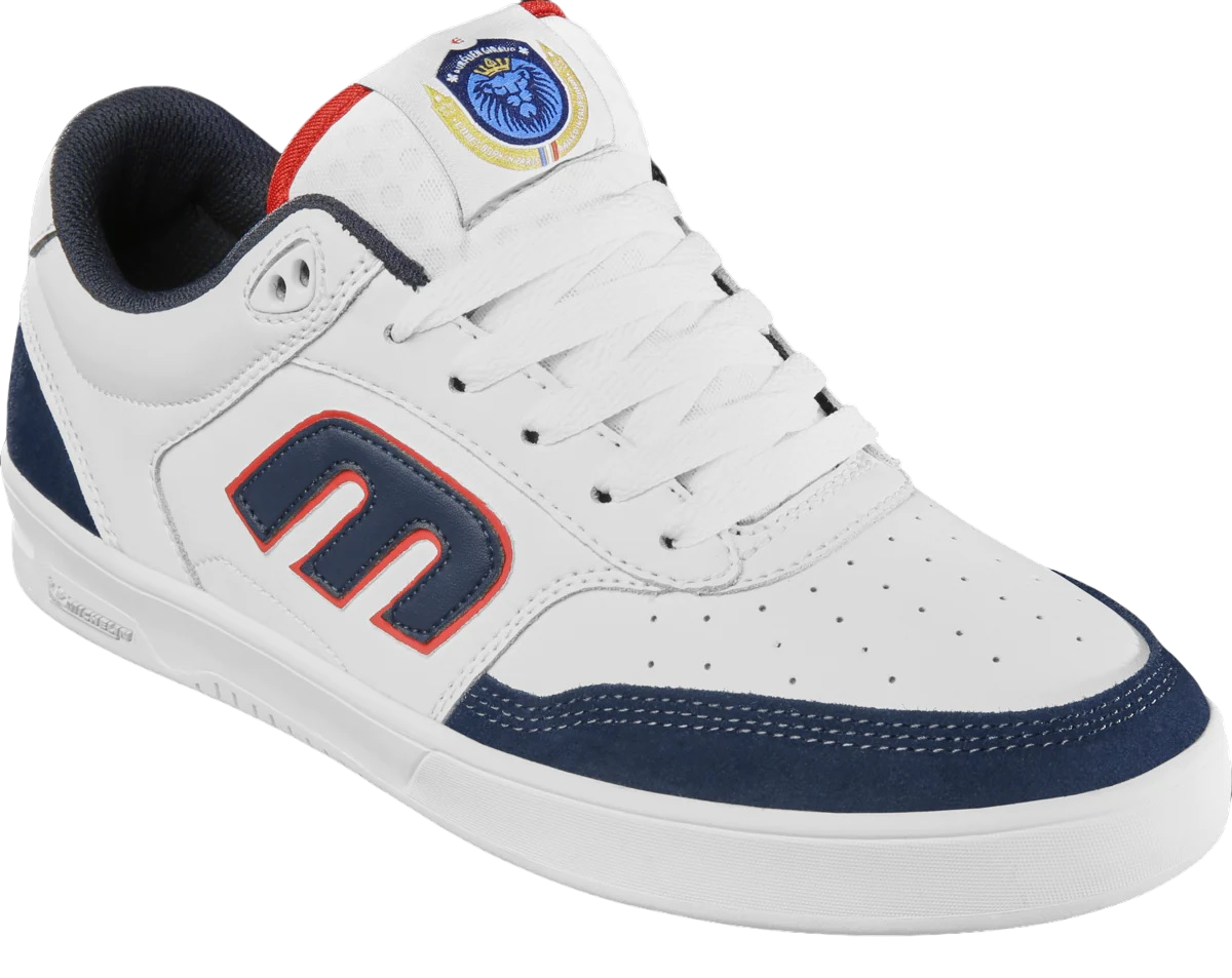 Pair of Etnies The Aurelien Michelin Skate Shoes in White, Navy and Red. Skate them or just wear them, the choice is yours.