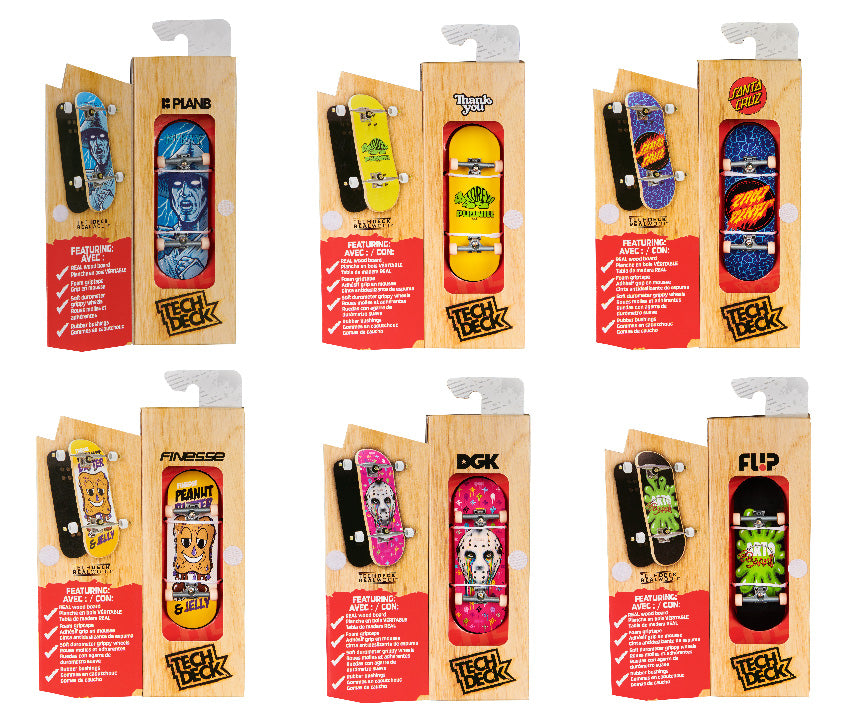 Take your fingerboard skills to the next level with the Tech Deck Performance Series! These real wood boards are engineered and built with hi-performance parts for ultimate action. From nose to tail, Tech Deck Performance Series Fingerboards are made to replicate the feel of a real skateboard. The wood board enables better pop to do even bigger tricks, while featuring real graphics from the biggest skate brands such as Toy Machine, Flip, Element, and more. The foam grip tape gives you more control so you can progress and fingerboard like a pro. The soft grippy wheels give you the feeling of real skating and further improve your board’s handling and control. The rubber bushings allow for tighter turns and a more realistic experience when hitting all your tricks. Tech Deck fingerboards are for skate-lovers ages 6 and up. Take your skills to the next level with the Performance Series Fingerboards from Tech Deck and ride like a pro!