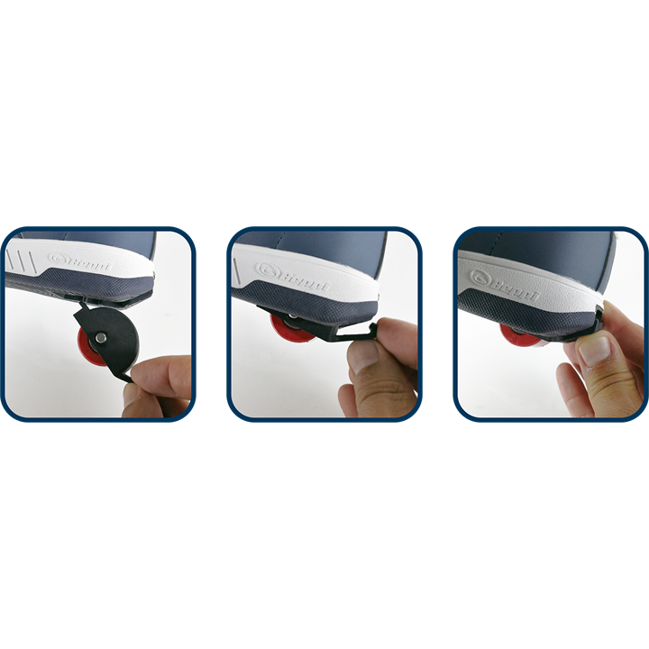 • The new patented easy-click wheel system allows the wheel to be easily removed within seconds in just one click and without using any tools.