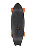 This is the Santa Cruz Flame Dot Shark Surf Skate Board measuring in at 9.85" wide by 31.52 long. Featuring high quality 7 ply North American Maple decks, branded OJ or Slime Balls wheels, and Carver surfskate trucks all custom designed and tuned by Santa Cruz.