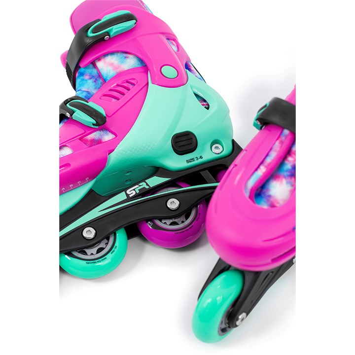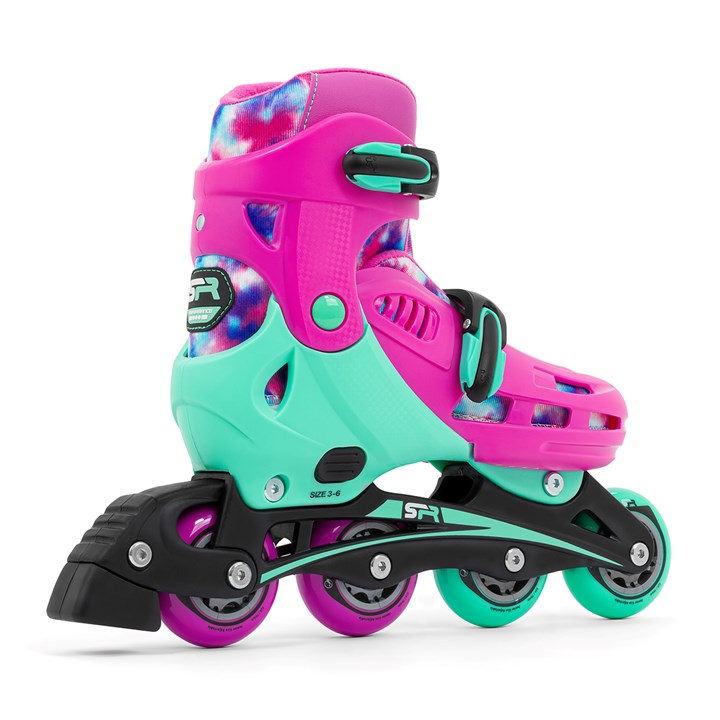 The SFR Cyclone is a recreational adjustable inline skate which is available in 2 quirky designs, tie-dye and ninja inspired. These quality inline skates are perfect for your little skaters who are just starting out. The adjustable sizes will grow with them, making it the perfect first skate for fast growing feet!