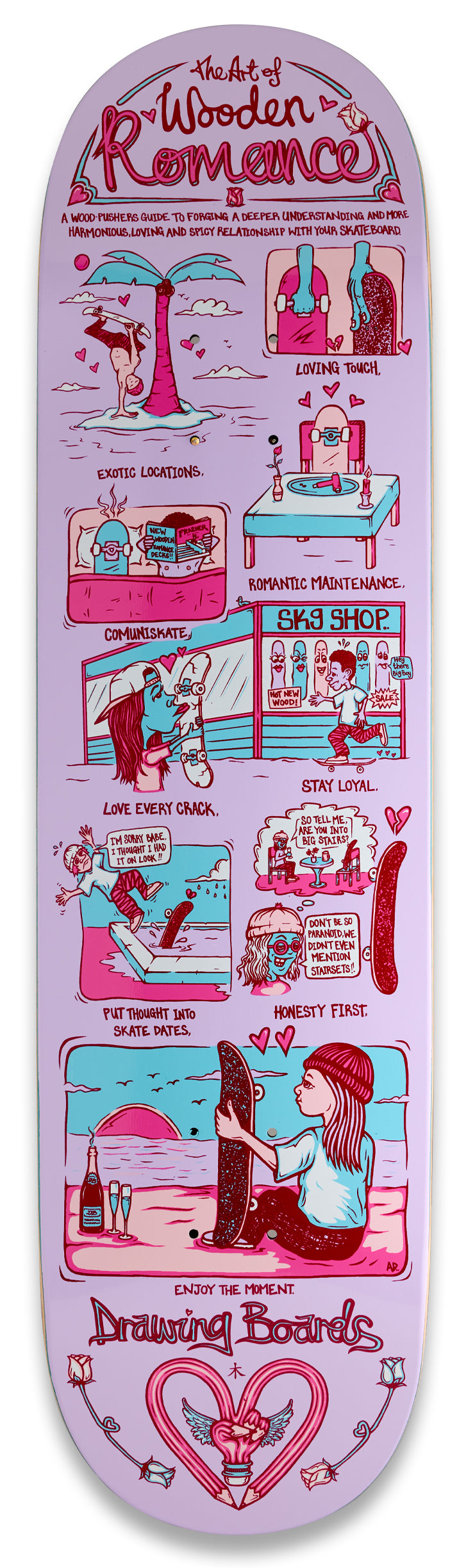 "A wood-pushers guide to forging a deeper understanding and more harmonious, loving, and spicy relationship with your skateboard." - Ad, Drawing Boards