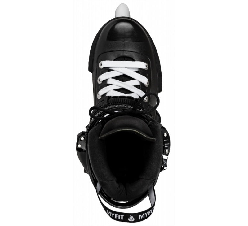 The Powerslide Next Pro Black 80 brings urban freeride skating back to its roots. It all starts with the rugged and lightweight Next hard boot that’s made to take anything you or the urban environment can throw at it. This renowned boot combines durability with comfort and support. Accompanied by a supportive height-adjustable cuff that allows you to easily adjust the forward flex, the Next boot is easy to customise. Made of only the highest-grade materials, the Next Pro 80 skate features the new MYFIT Prime liner that’s lightweight, heat-mouldable, and incredibly comfortable. The advanced liner has anatomical padding, microfibre lining material, and a brand new 3D moulded tongue that helps improve control, while the lacing routed around the shaft that, combined with the replaceable PU collar, gives you superb stiffness and support. Ideal for intense urban freeride inline skating, this feature-packed liner even has a replaceable MYFIT shock absorber to cushion landings. This advanced skate is designed around the patented TRINITY 3-point mounting system that gives you you get a low centre of gravity and efficient power transfer to the light and precise Ego SL frames. For foot sizes up to 42/43, the skate comes with a 243mm frame, while larger sizes come with a 275mm frame that can accommodate 90mm wheels. Complete with 4x80mm Ultra High Rebound (UHR) UNDERCOVER Raw wheels and smooth WICKED ABEC 9 bearings, the Powerslide NEXT Pro Black 80 is designed to deliver urban freeride skating in its purest form.
