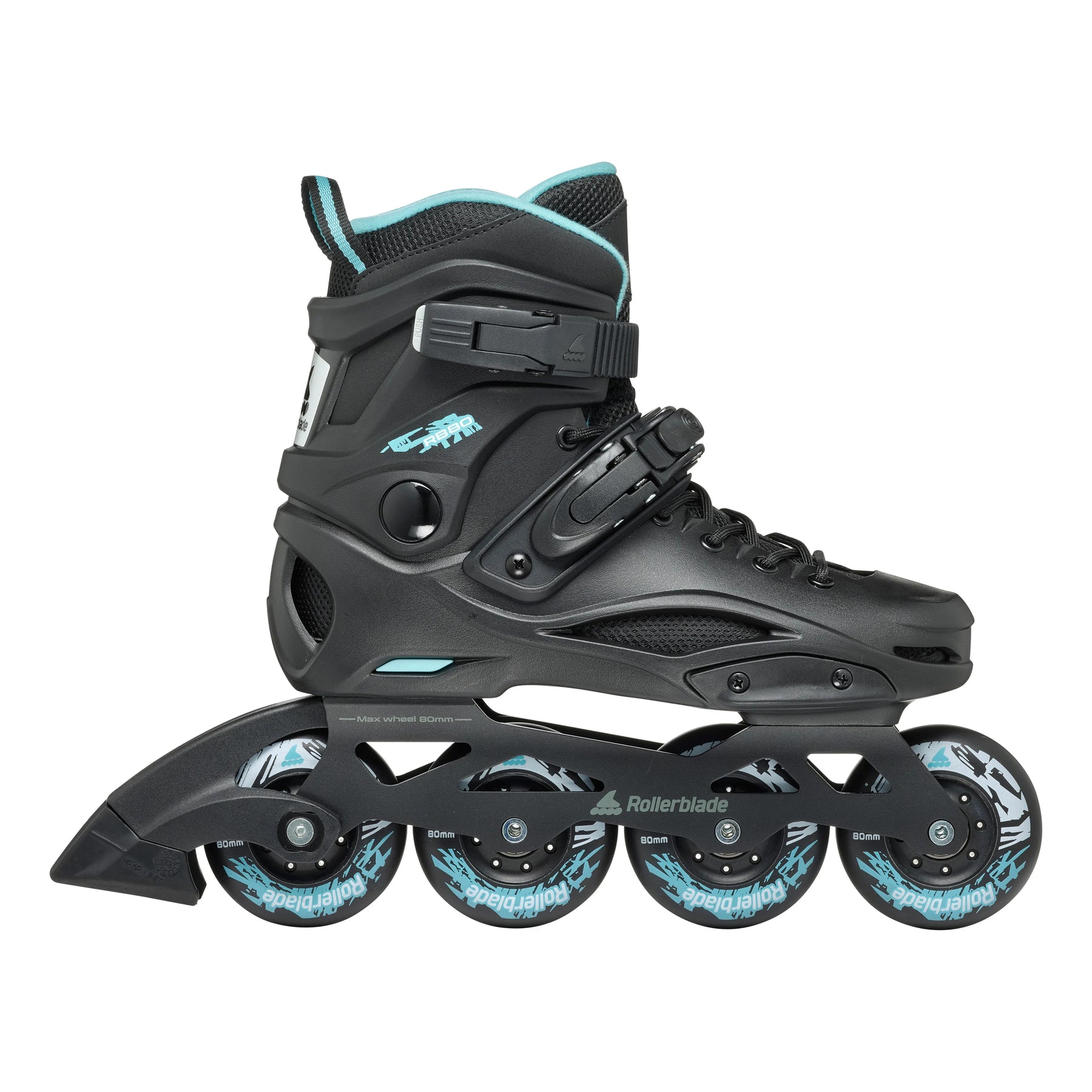 The new RB 80 Women's Inline Skates in Black and Light Blue is a great skate for those wanting something durable, yet comfortable and maneuverable. This skate features four urban profile 80mm wheels and SG7 bearings for added control, stability and speed. The molded boot technology, lateral support, secure closure system, lateral sliders and shock absorbing padding in the heel make this an ultra responsive and versatile skate that skaters of all abilities can appreciate. The brake comes mounted on the skate.