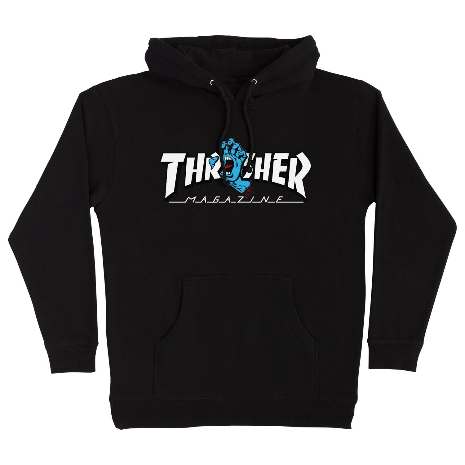 Thrasher links up with Santa Cruz Skateboards to drop one of their most firing collaborations of the year. COTY? The new Thrasher Screaming Logo men's regular fit heavyweight fleece hooded pullover sweatshirt features large front Santa Cruz x Thrasher Screaming Logo printed in soft hand ink. Skate and destroy till the end.