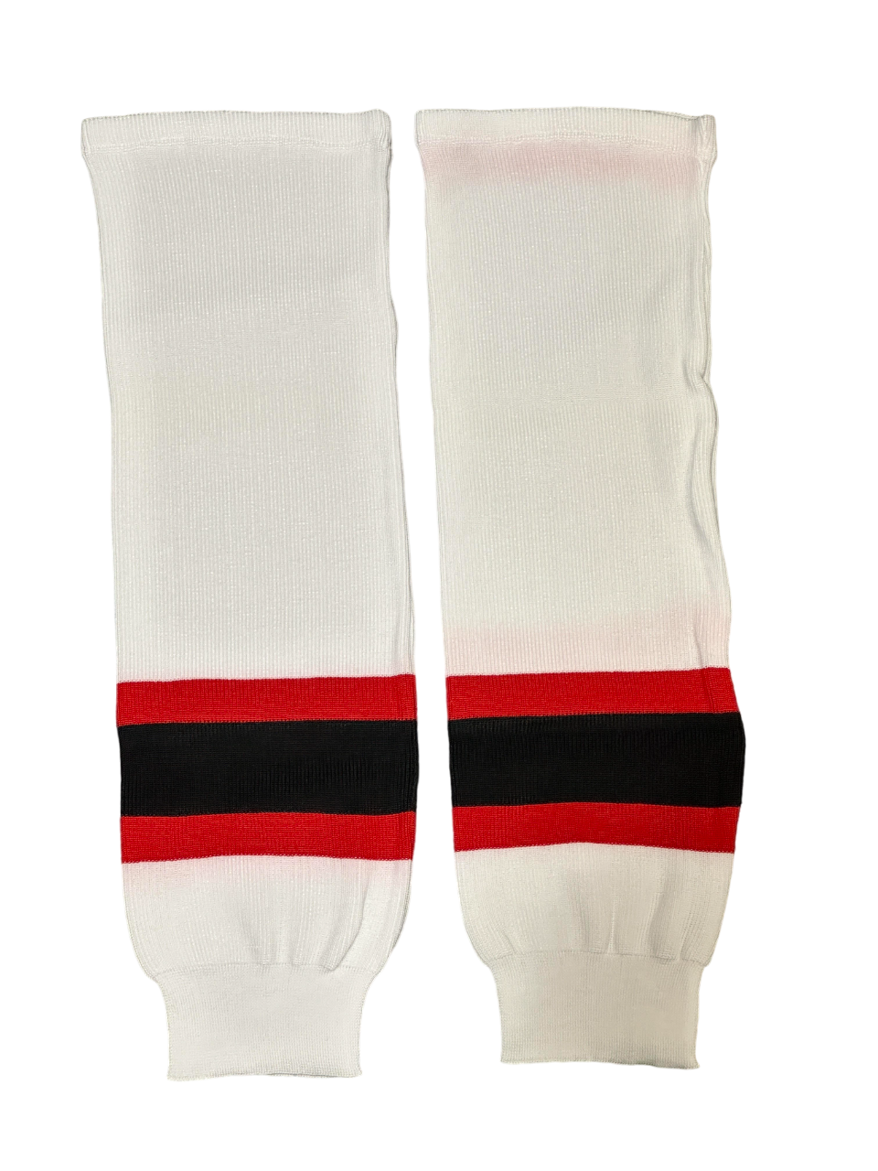 Pair of Ventronic Acrylic Hockey Socks in White, Red and Black.
