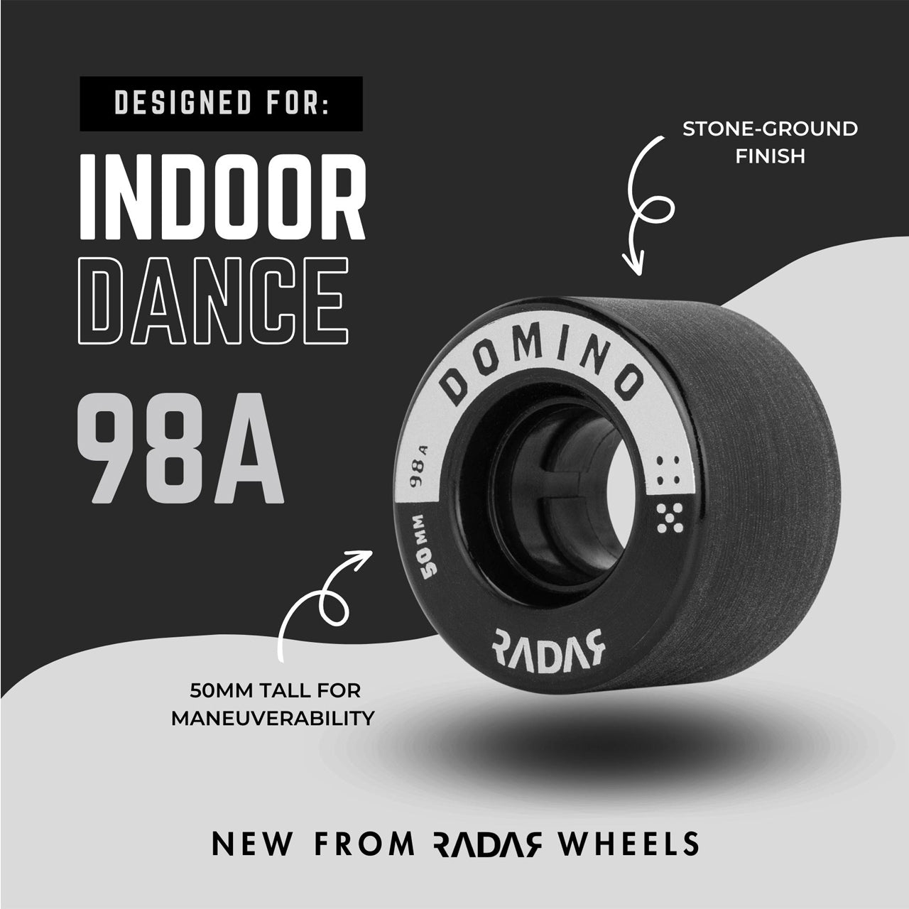 The Radar Domino Black and Silver wheels are designed for all types of indoor dance skating.