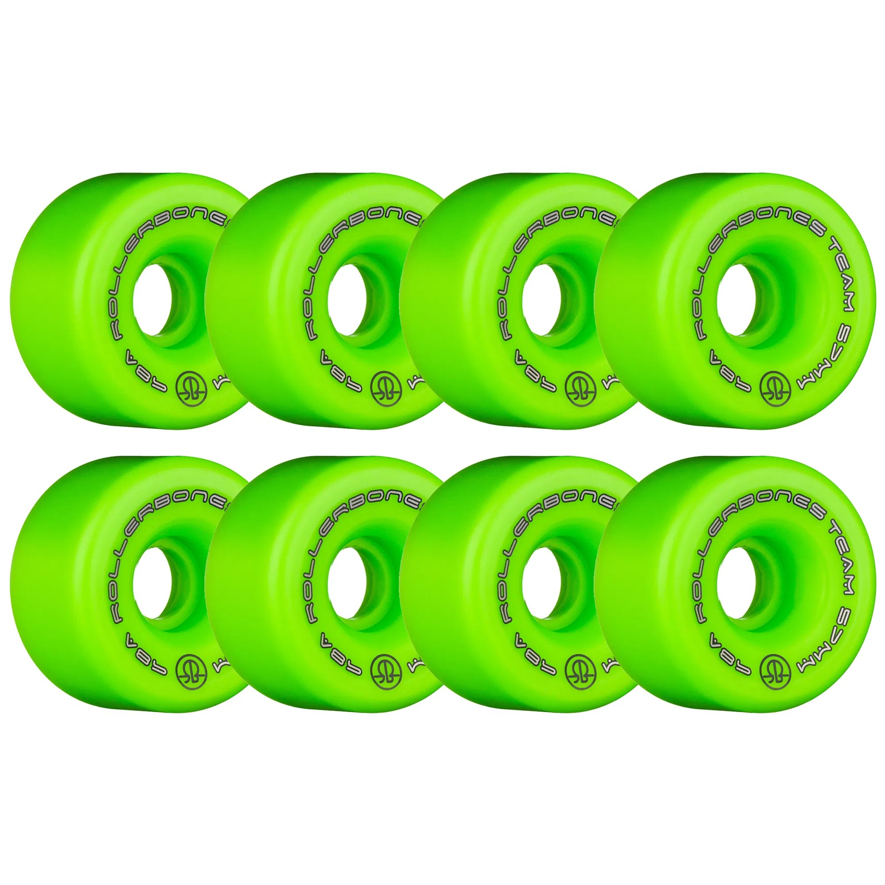 Set of 8 Rollerbones Team Logo Wheels in Green 57mm 98a, these high rebound wheels have been designed for indoor recreational and artistic skating.