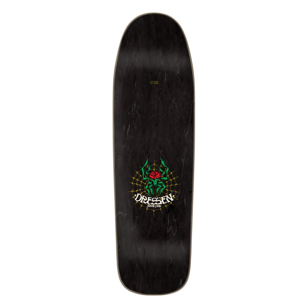 Santa Cruz Eric Dressen Rose Cross Shaped Skateboard Deck with art by Mako, based on the original artwork by Phillips Studios, featuring spot matte graphic on Eric's new custom shape with 7 ply North American Maple pressed individually using epoxy making a strong, responsive deck with long lasting pop and consistent concave and kick.