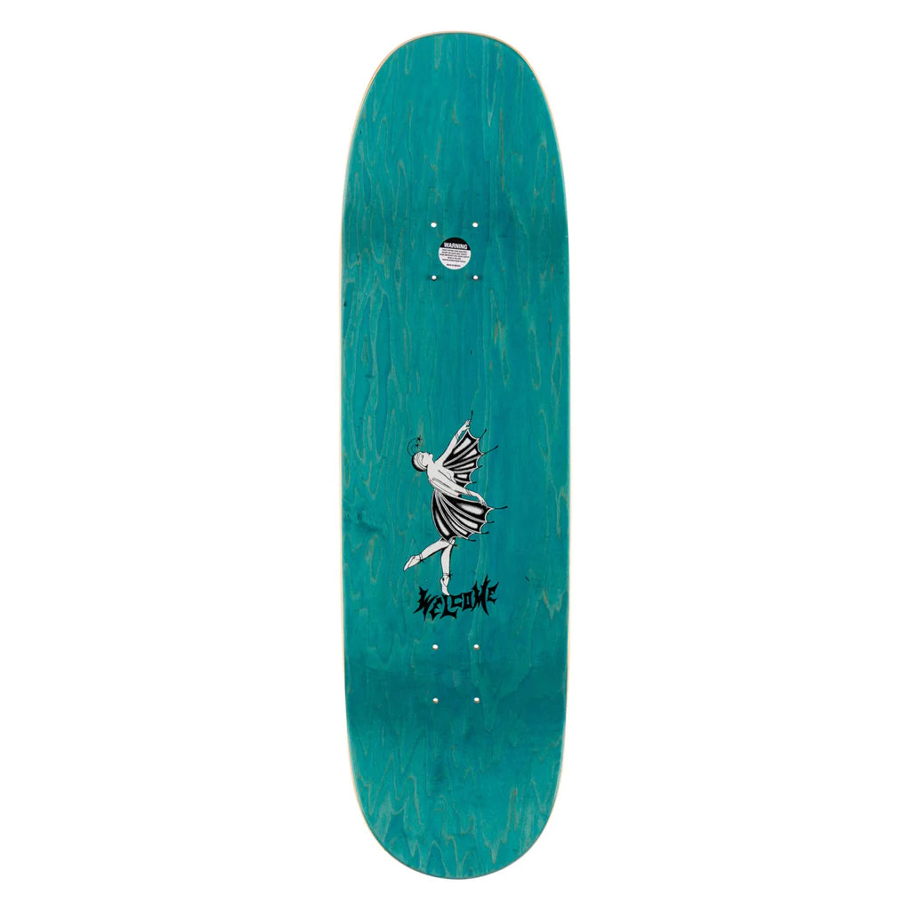 Here is the Welcome Ryan Reyes Dancer On Baculus 2.0 Bone and Gold Foil Skateboard Deck in 9.0" !